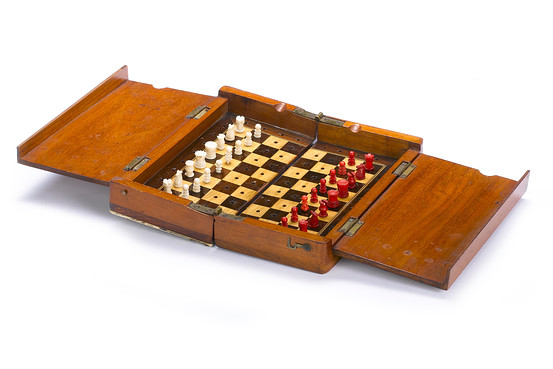 Another 18th-century set comes from Russia. Carved from mammoth ivory, it is valued at £2,000-£3,000. And a 19th-century English whaler’s maritime traveling set will be offered in its original mahogany box, engraved with the name of the whaling ship’s captain (estimate: £900-£1,200).