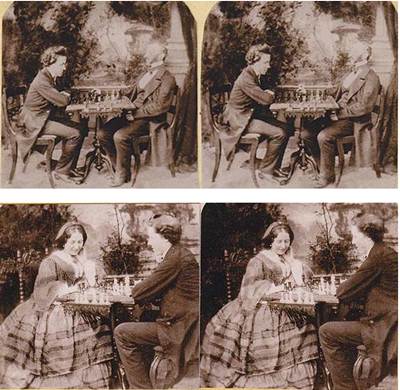 Here’s a copy from an 1860’s stereoview of a young man and his lady playing a game of chess.plus the same note about being ‘created from the original’, etc.