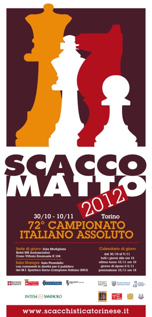 The Italian Chess Championship 2012 will be played in Torino from October 30 to November 10. This is for the first time that this important Italian town is hosting the national chess championship.